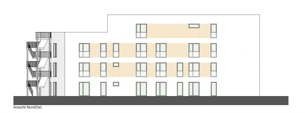 Im 2. Obergeschoss sowie im Staffelgeschoss ist eine Intensivpflege Wohngruppe mit 12 Pflegeplätzen vorgesehen.