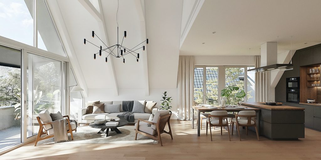 Das geplante Objekt verfügt über zwei Vollgeschosse zzgl. eines Dachgeschosses. Es werden drei Wohneinheiten errichtet, deren Wohnungsgrößen sich zwischen 110 qm – 144 qm erstrecken. Darüber hinaus verfügt das Neubaugebäude über einen Aufzug und drei Stellplätzen unmittelbar vor dem Haus, davon wird einer als barrierefreier Stellplatz hergestellt. Dadurch wird ein möglicher barrierefreier Zugang bis ins Dachgeschoss gewährleistet.